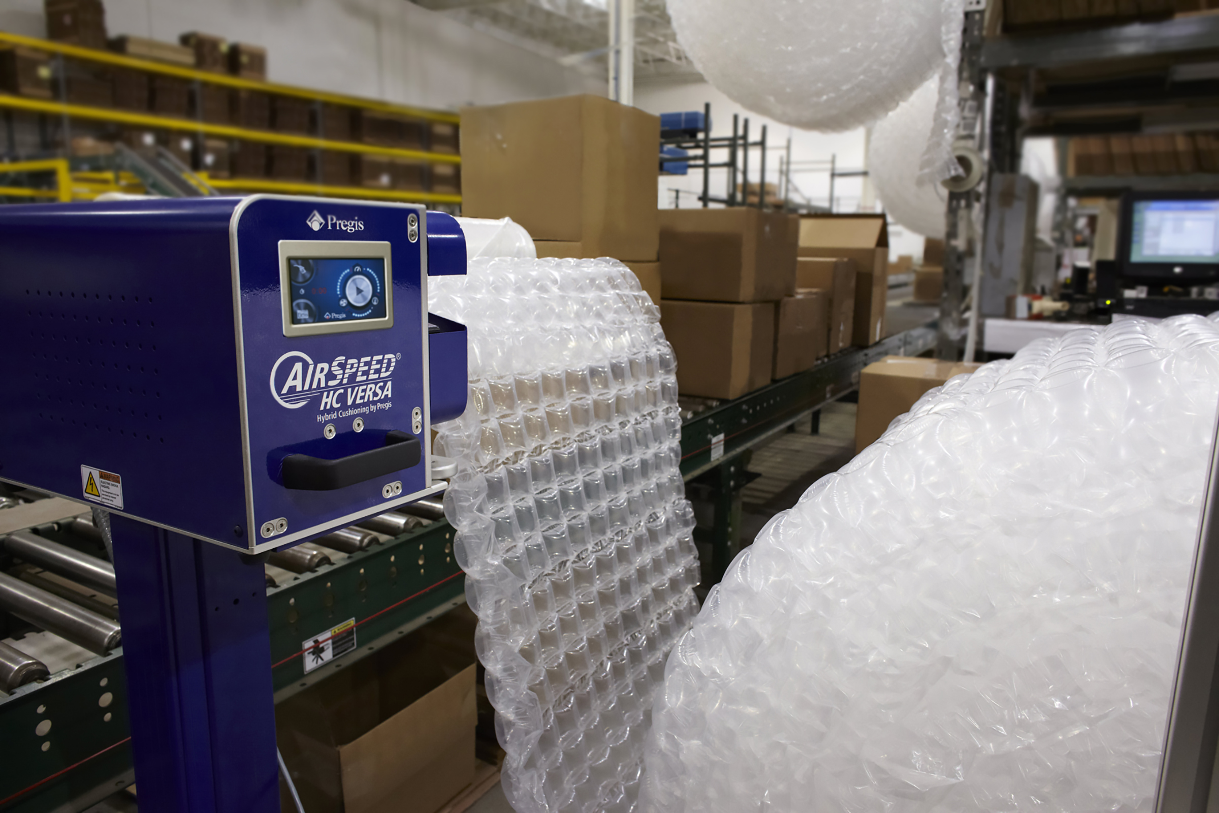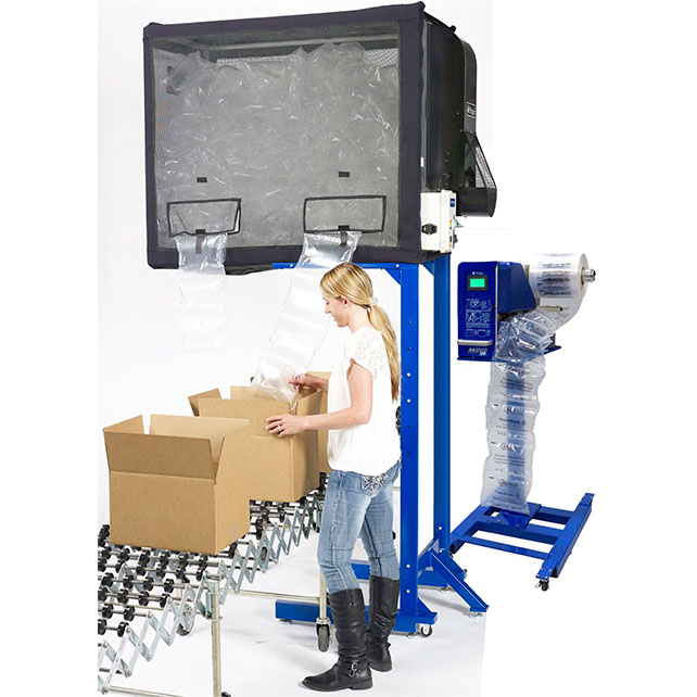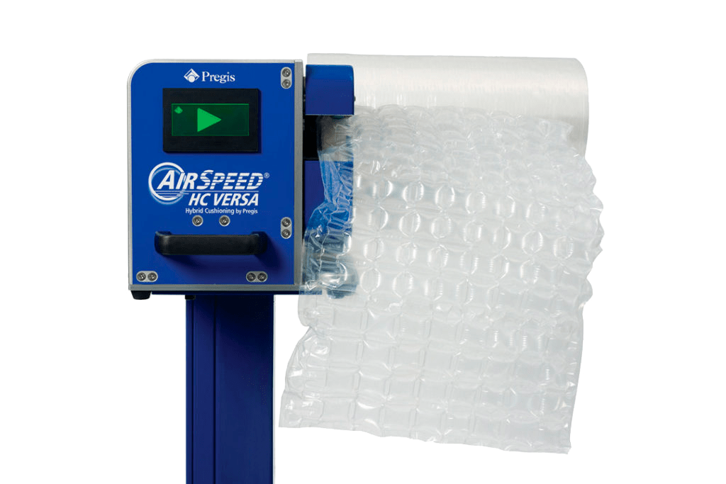 El AirSpeed HC Versa es un sistema de embalaje inflable bajo demanda que produce cojines de aire con un patrón cuadrado de múltiples cámaras para proteger productos durante el transporte. Está diseñado para trabajar con distintos tipos de película y adaptarse a diversas necesidades de protección.