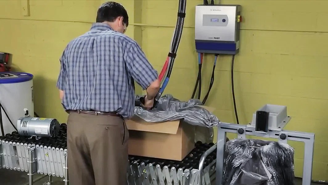 - ecnología de espuma «Foam-in-Place» (FIP): Genera espuma protectora que se adapta perfectamente a la forma del producto.